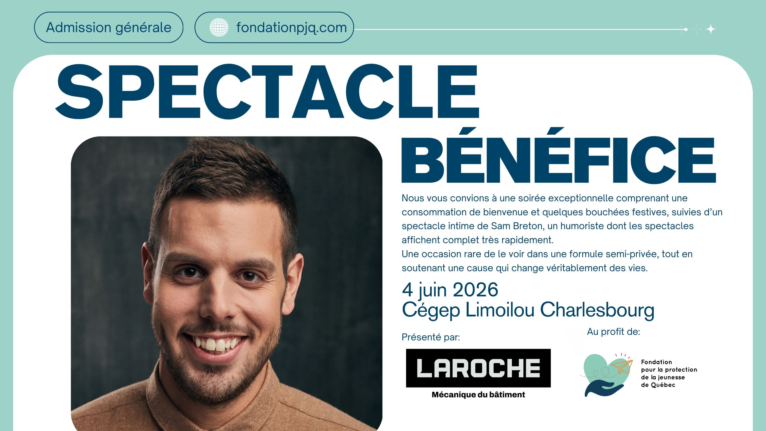 Joignez-vous à nous le 4 juin pour une soirée-bénéfice unique en compagnie de l’humoriste Sam Breton. Une occasion de rire, de se rassembler et de faire une réelle différence dans la vie des jeunes soutenus par la Fondation.